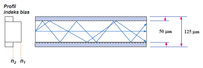 Fiber optik single mode. Ukuran core kabel multi mode secara umum adalah berkisar antara 50 sampai dengan 100 mikrometer. Kabel fiber optik atau optical fiber ini pada umumnya terdiri dari dua jenis yaitu single mode fibers dan multi mode fibers.